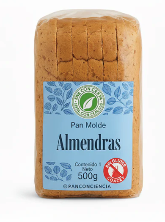Un pan artesanal, suave y nutritivo, elaborado con harina de almendras y sin una pizca de gluten. Certificado por COACEL, es perfecto para quienes buscan una opción saludable y natural.